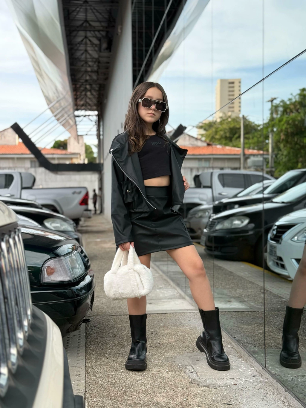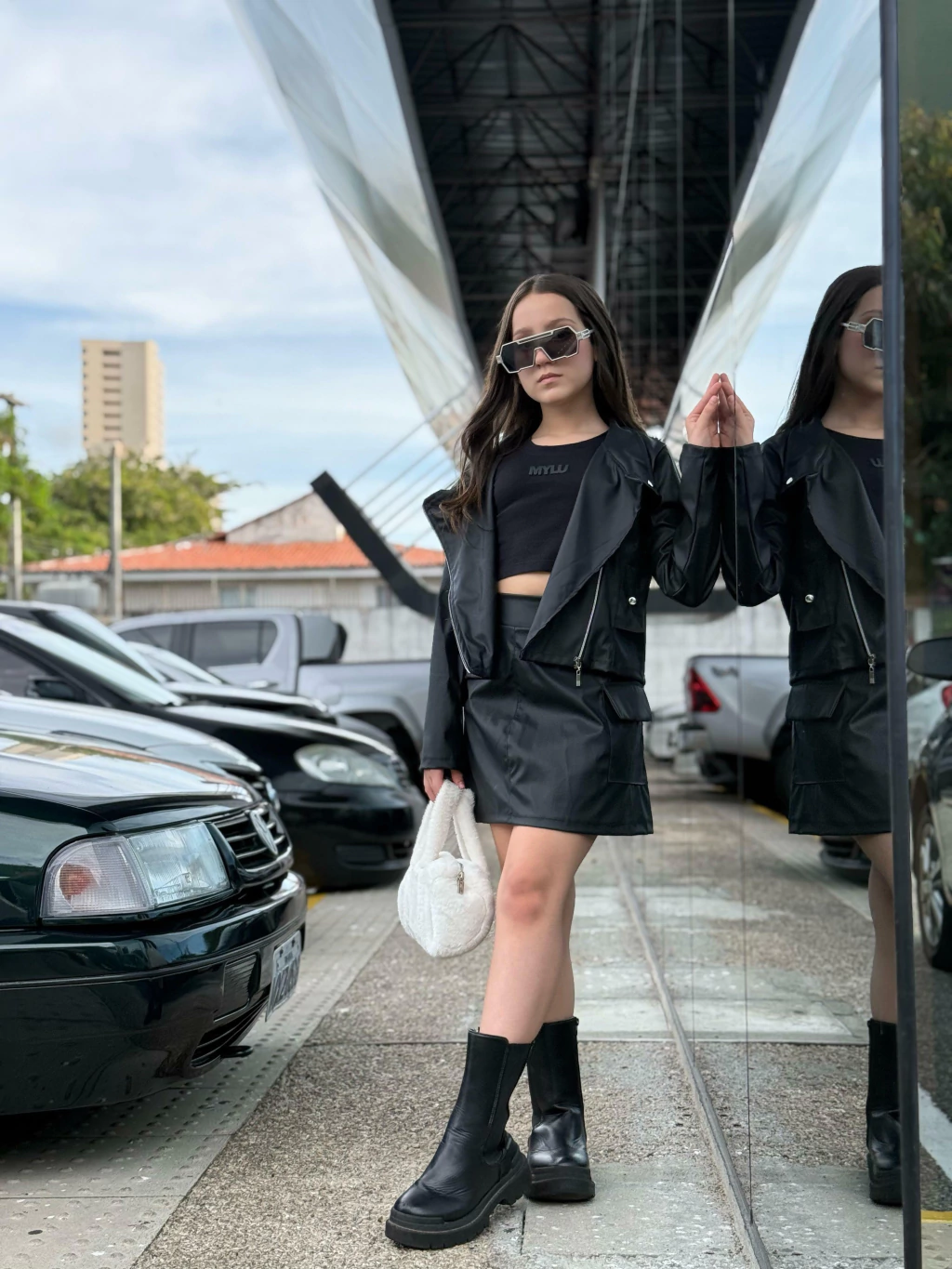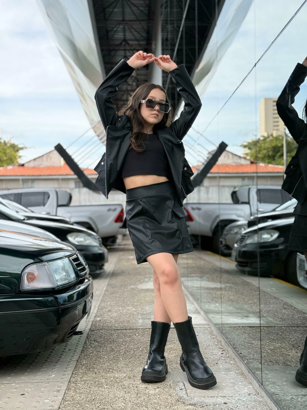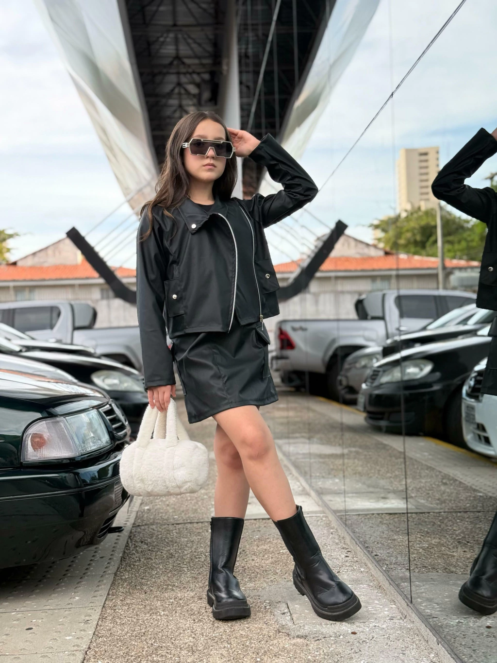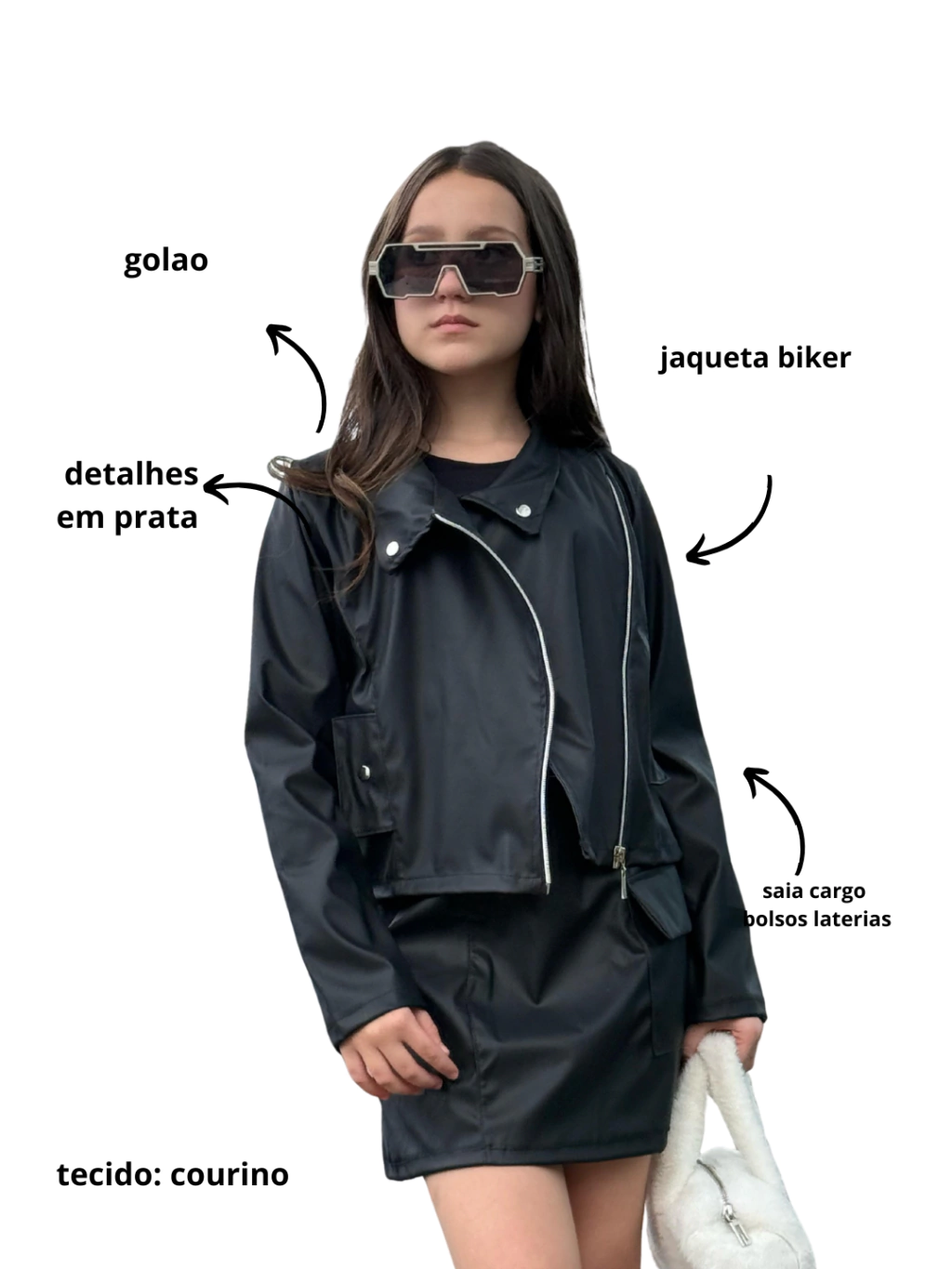 O Conjunto Sasha chegou para transformar os dias frios em passarelas de estilo! Com uma jaqueta biker de courino super fashion e uma saia cargo com bolsos laterais funcionais, essa combinação entrega personalidade, conforto e muito impacto visual. Ideal para meninas ousadas, modernas e cheias de atitude, que amam se destacar com looks poderosos no inverno!