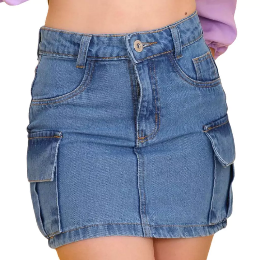A Saia Sofia Cargo é a escolha ideal para adolescentes que amam estar na moda! Feita em jeans azul, esta saia combina estilo e praticidade, trazendo o visual cargo que é tendência entre as jovens de 10 a 16 anos. Com bolsos funcionais e um design moderno, ela é perfeita para qualquer ocasião, oferecendo conforto e atitude em uma única peça. Seja para um look casual ou mais elaborado, a Saia Sofia Cargo vai ser a queridinha no guarda-roupa das meninas que adoram se destacar com estilo.